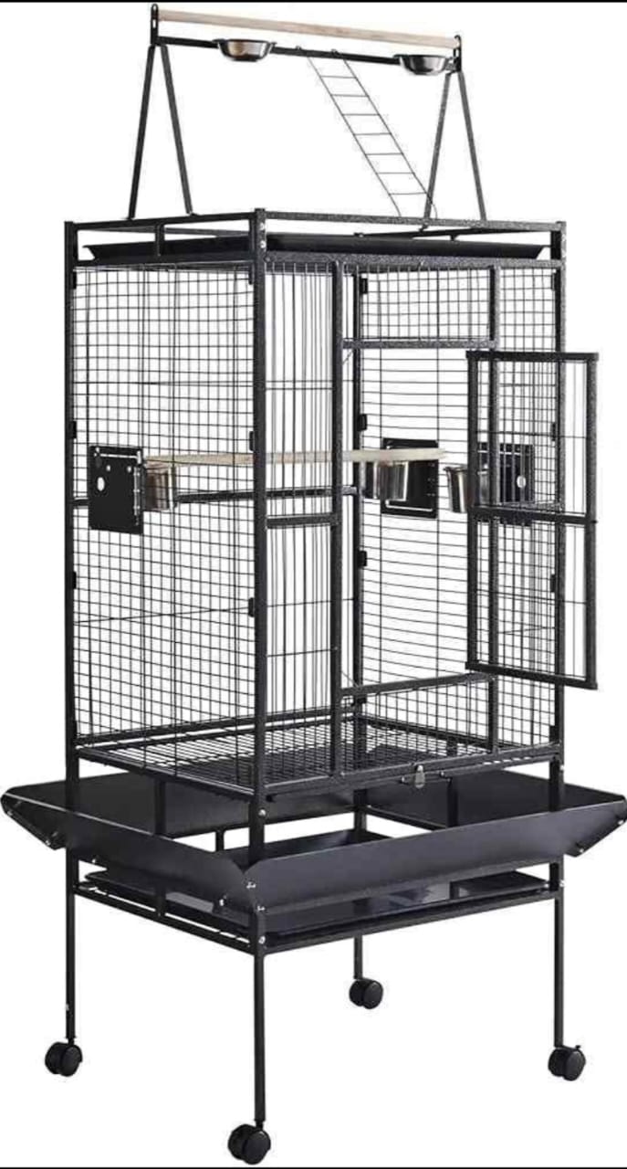 🐦El interior está diseñado con una percha, 3 cuencos de acero inoxidable y 2 bandejas de metal deslizantes para una fácil limpieza